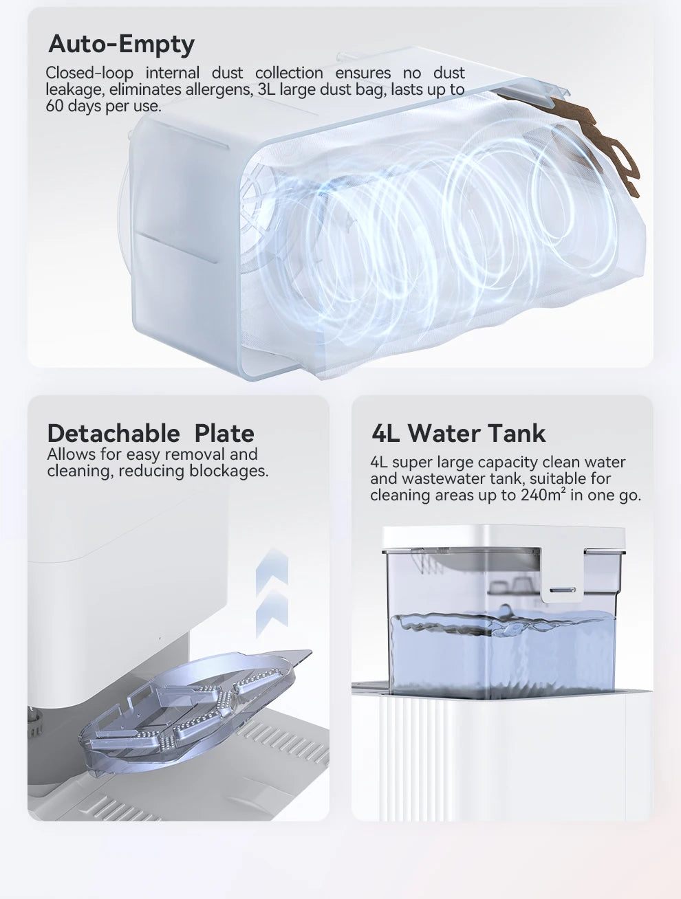 - Stazione Autopulente - Svuotamento automatico della polvere e drenaggio acqua