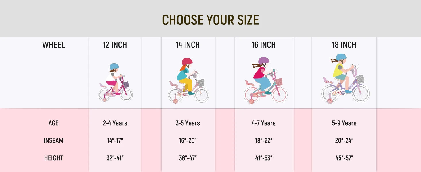 JOYSTAR Girls Bike for 2-9 Years Old Kids, 12 14 16 18 Inch Kids Bike with Training Wheels, Streamers, Basket, Doll Seat, Pink