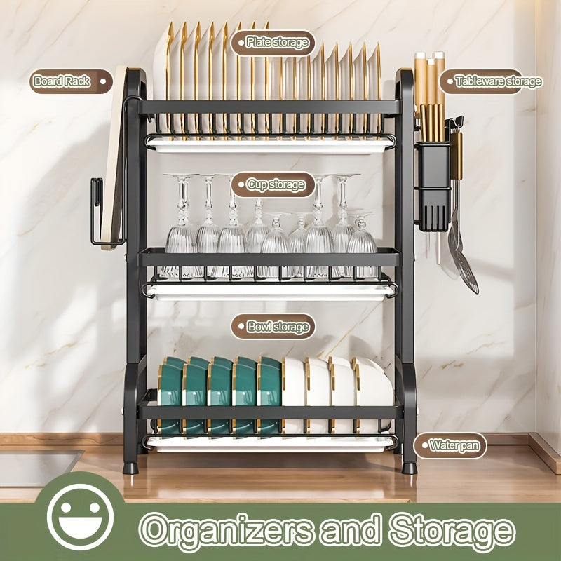 3-Tier Dish Drying Rack Kitchen Accessories Organizer Dish Rack Drainboard Set Kitchen Organizer Drainboard with Utensil Holder