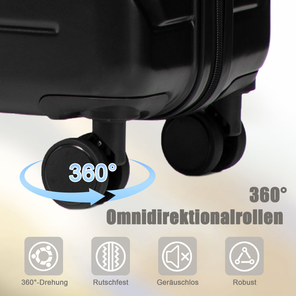 Il set completo da 4 pezzi FAUMRTA combina design moderno e funzionalità premium. Include 3 trolley (19", 24", 28") più un elegante beauty case, perfetto per ogni tipo di viaggio.