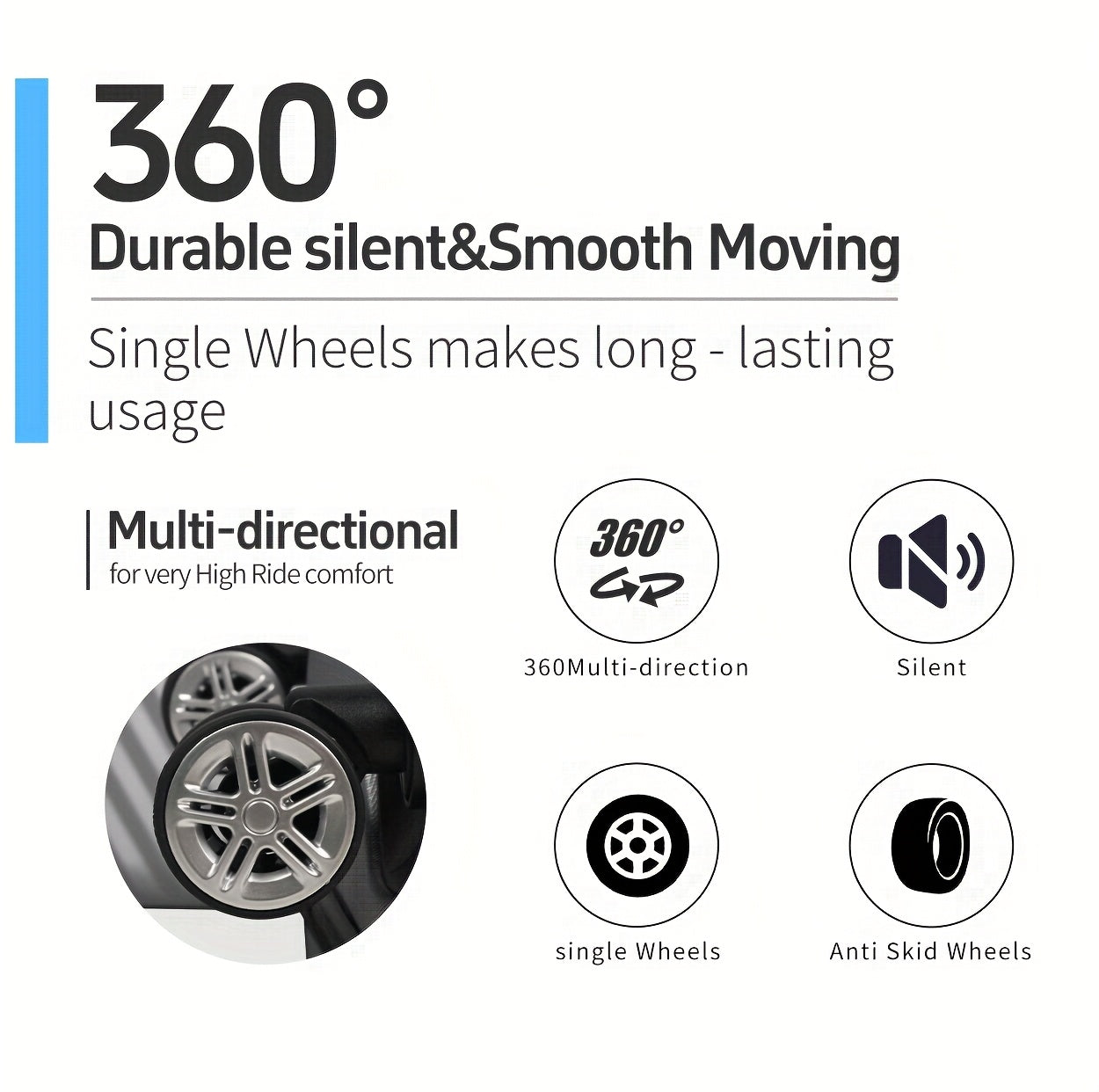 - Ruote silenziose universali - 4 ruote spinner per massima manovrabilità
